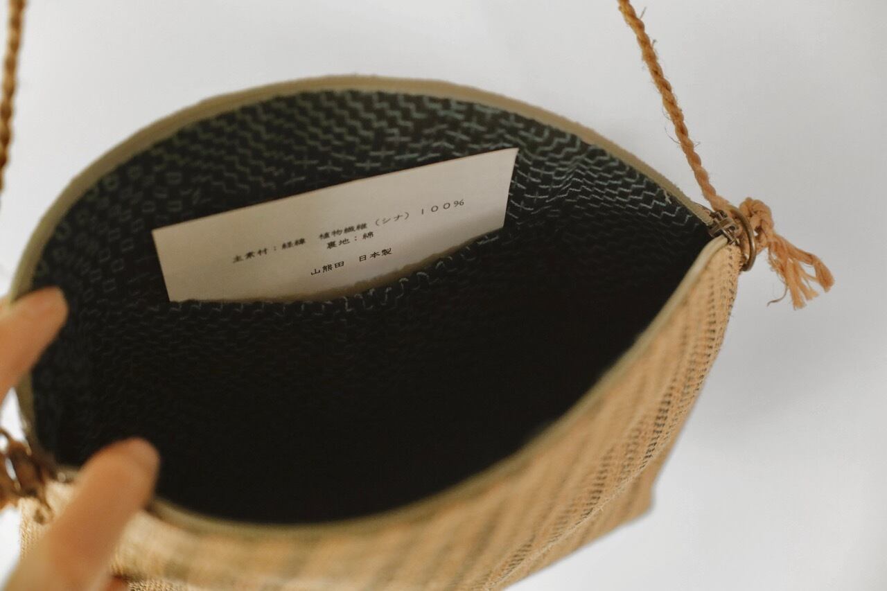山熊田工房のしな布で作ったサコッシュ。