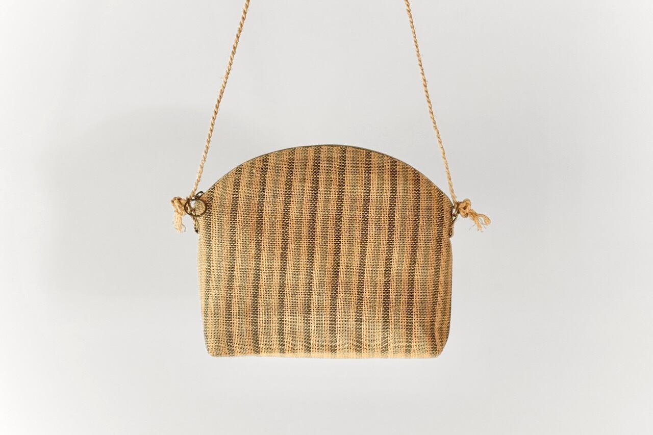 サコッシュ [ 青い縞 / 生成 ] ⎯ 山熊田のしな布