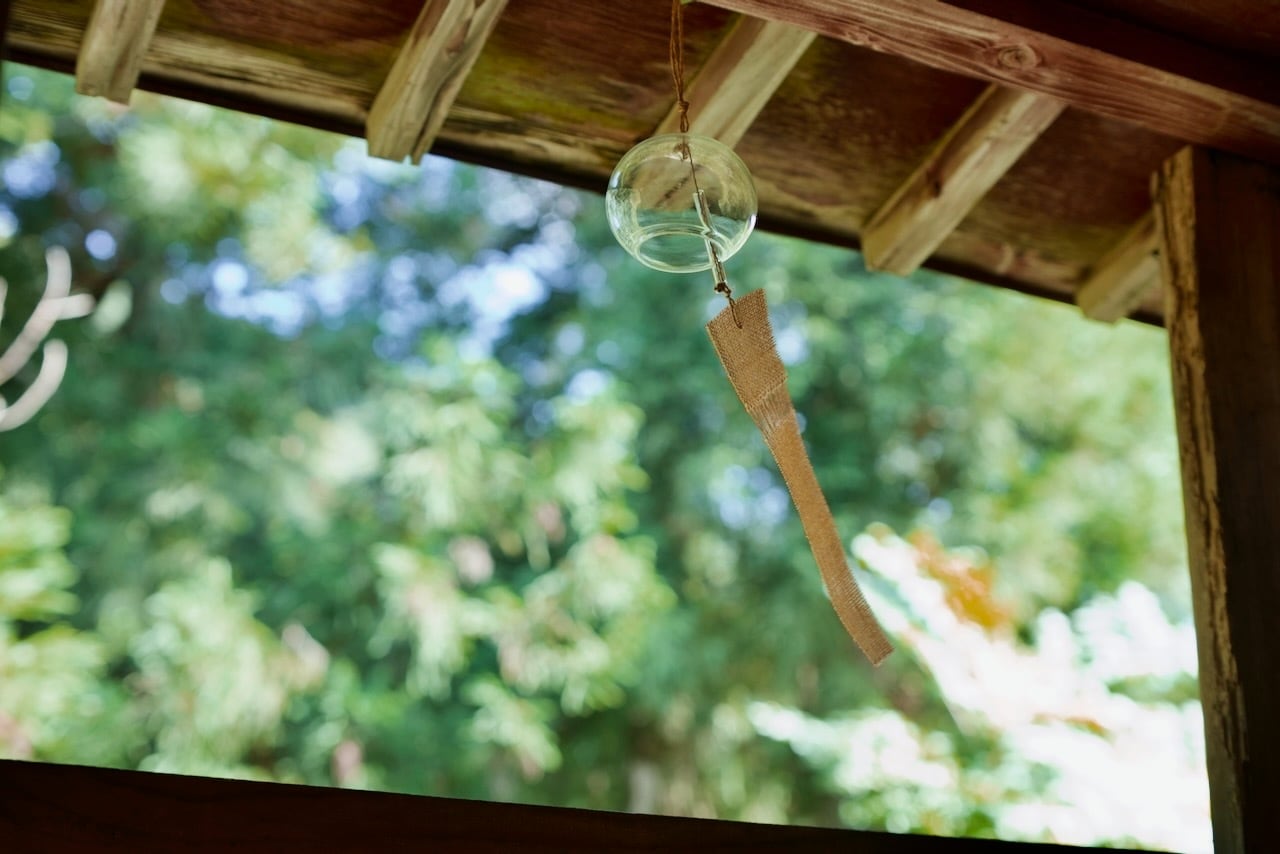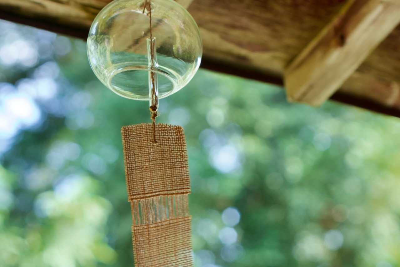 光を透かして風に揺れるガラスとしな布が、蒸し暑い日本の夏に涼を運んでくれます。