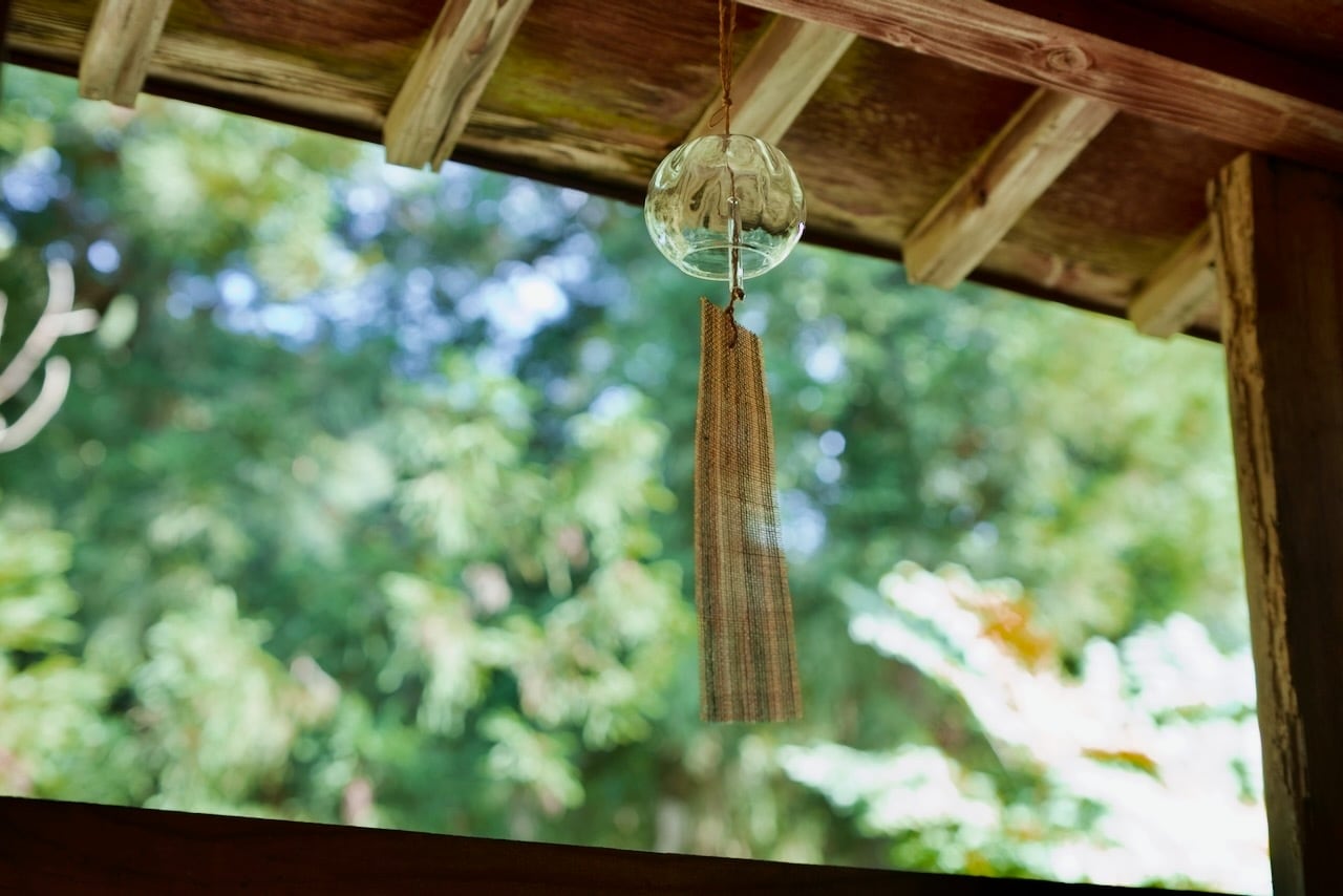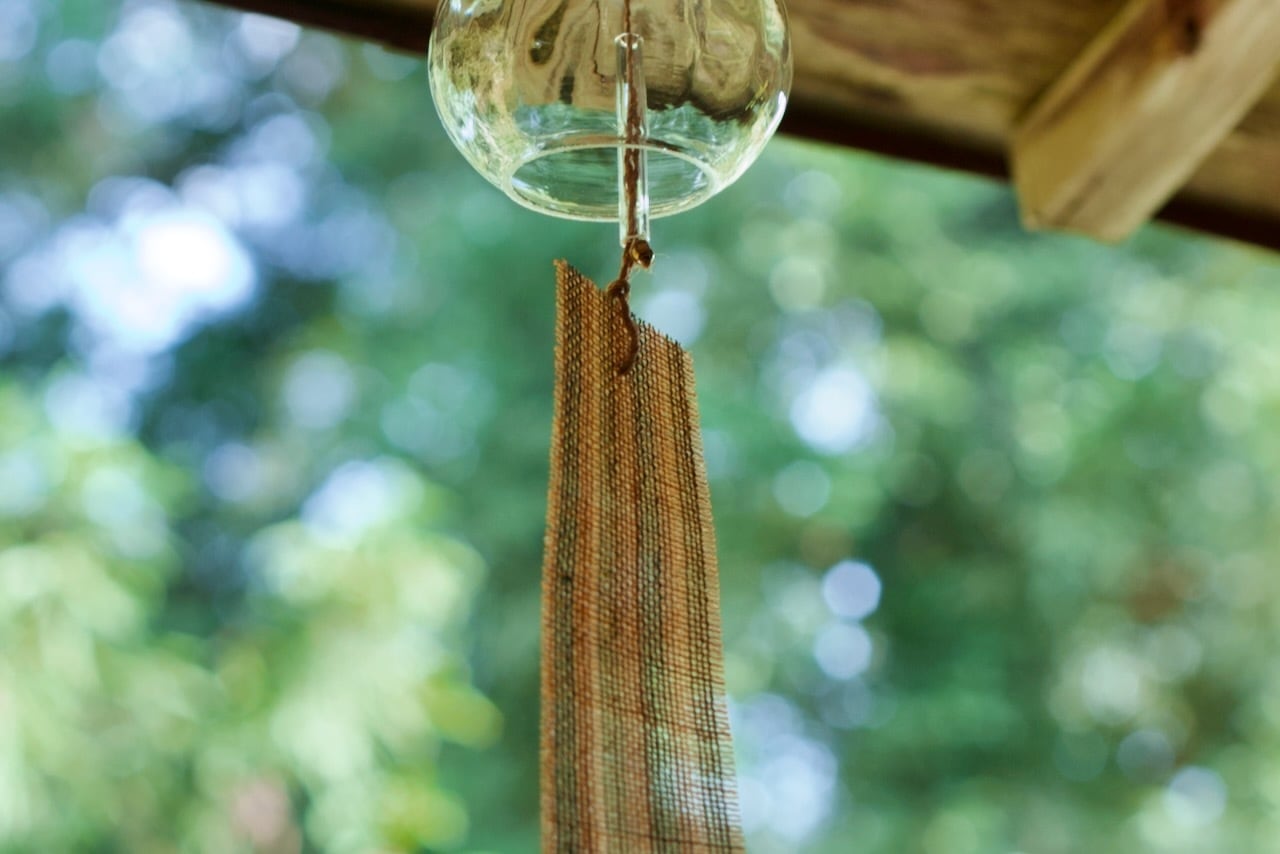 光を透かして風に揺れるガラスとしな布が、蒸し暑い日本の夏に涼を運んでくれます。